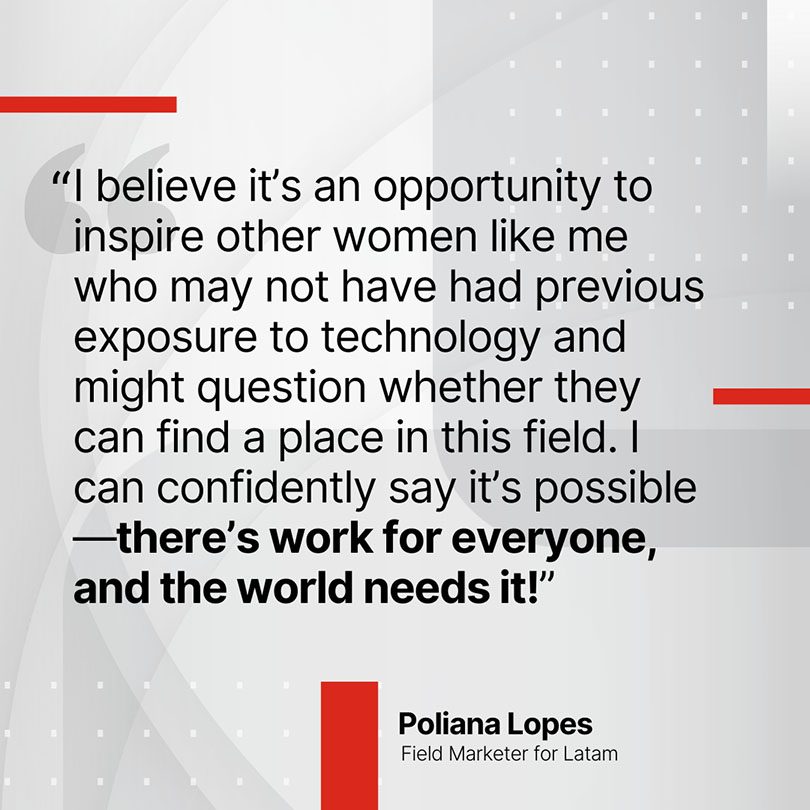 I believe it's an opportunity to inspire other women like me who may not have had previous exposure to technology and might question whether they can find a place in this field. I can confidently say it's possible-there's work for everyone, and the world needs it!