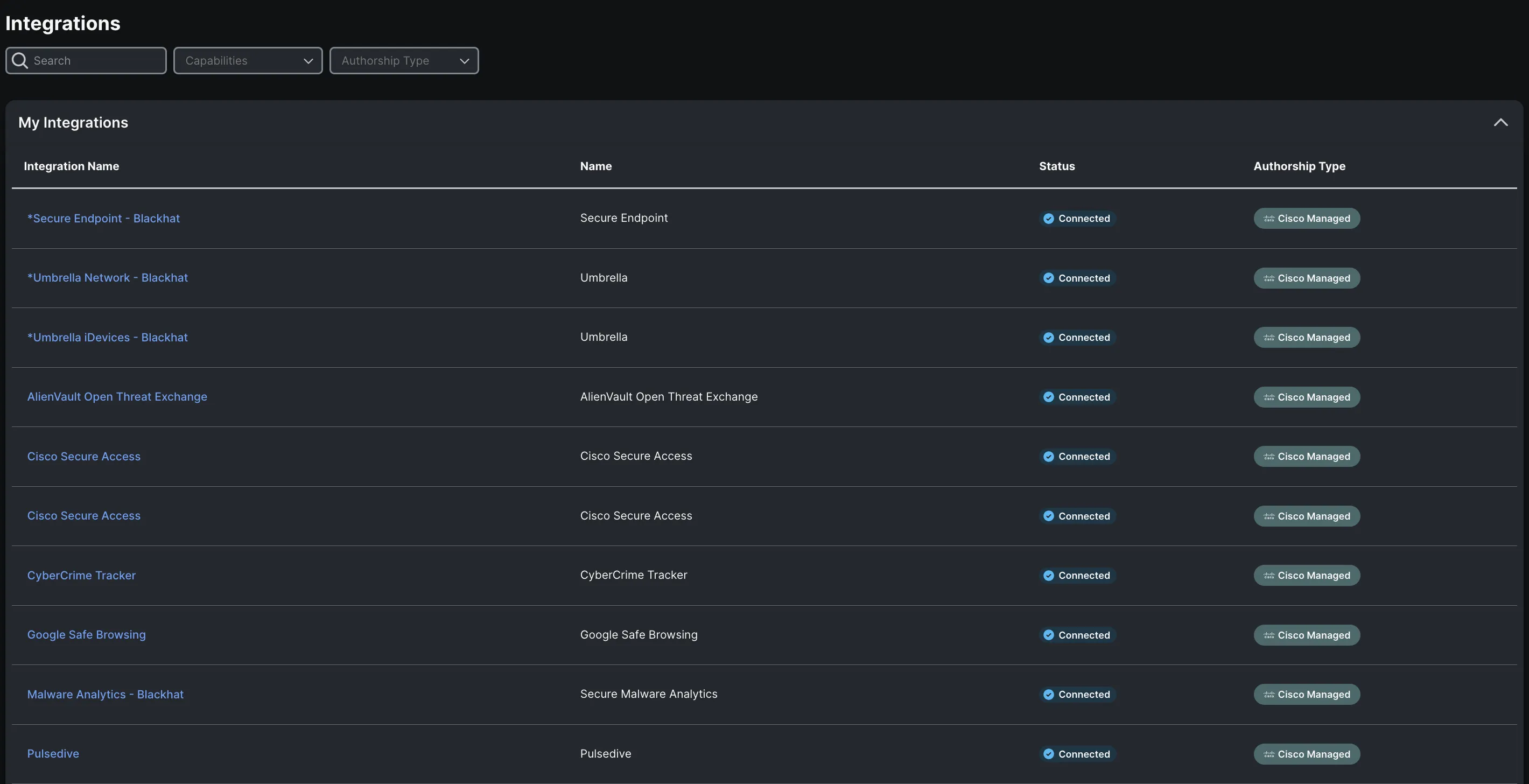 Below are the Cisco XDR integrations for Black Hat Europe, empowering our threat hunters to investigate Indicators of Compromise (IOC) very quickly, with one search.