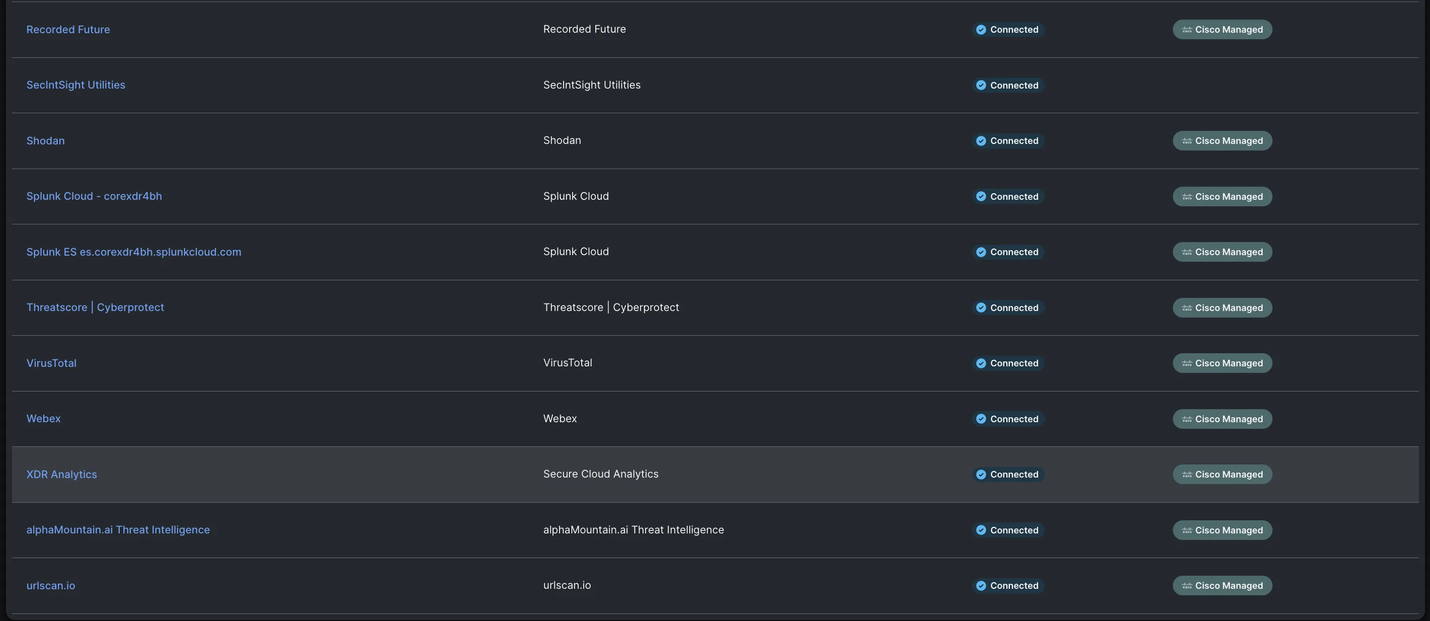 - Cisco XDR and Cisco Secure Malware Analytics, using the Cisco Security Cloud app