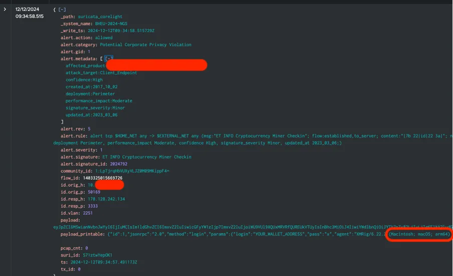 Lo and behold -the asset was in Level 3, Capital Suite, Room 1 connected to the NOC Wi-Fi; right in the same room as me! I had built another automation workflow that brings in Corelight and PANW firewall threat detections into Splunk Cloud, through which we were able to track down the device in the room to a MacBook and an MAC address.