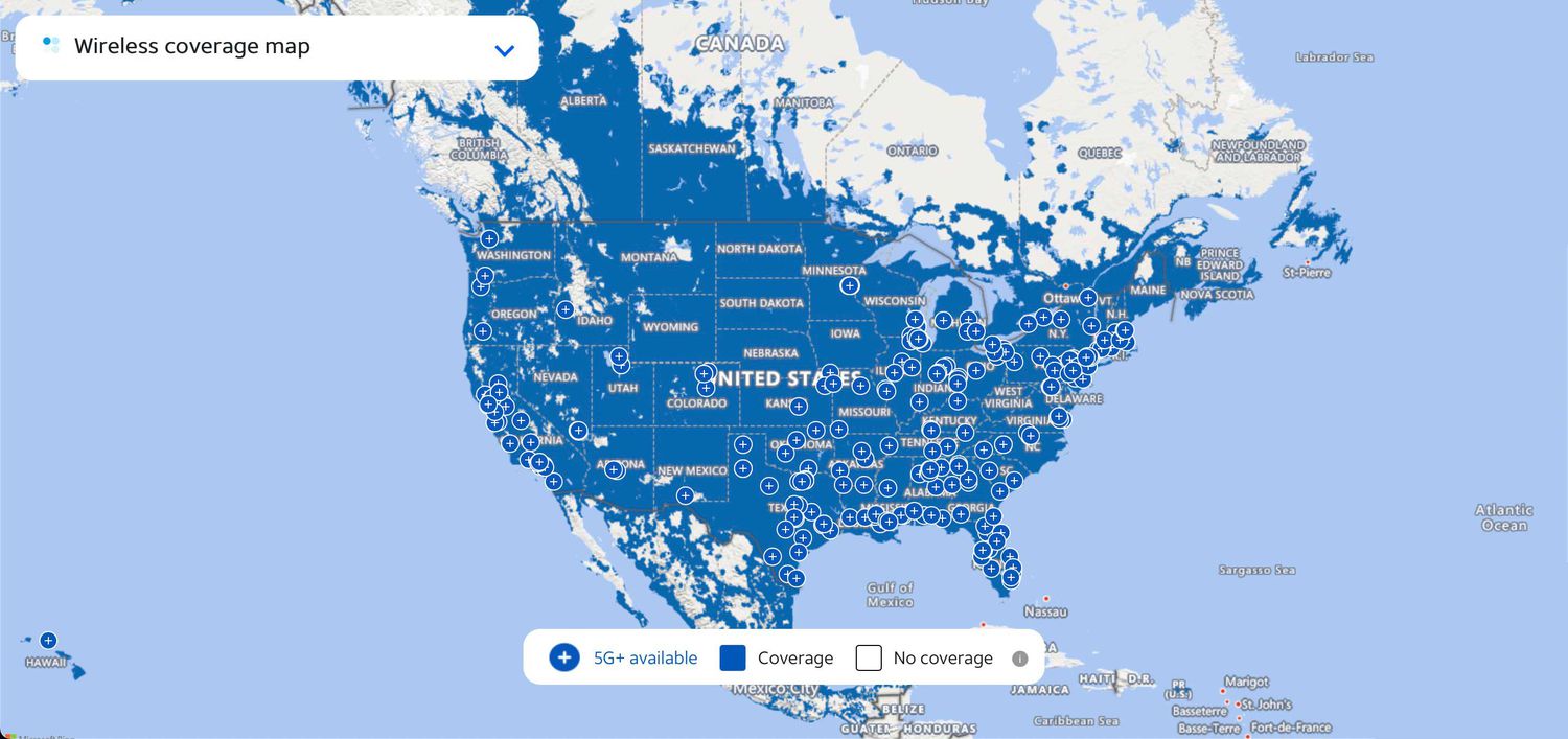 As of January 2025, this is AT&T's 5G coverage map for the continental US and southern Canada: