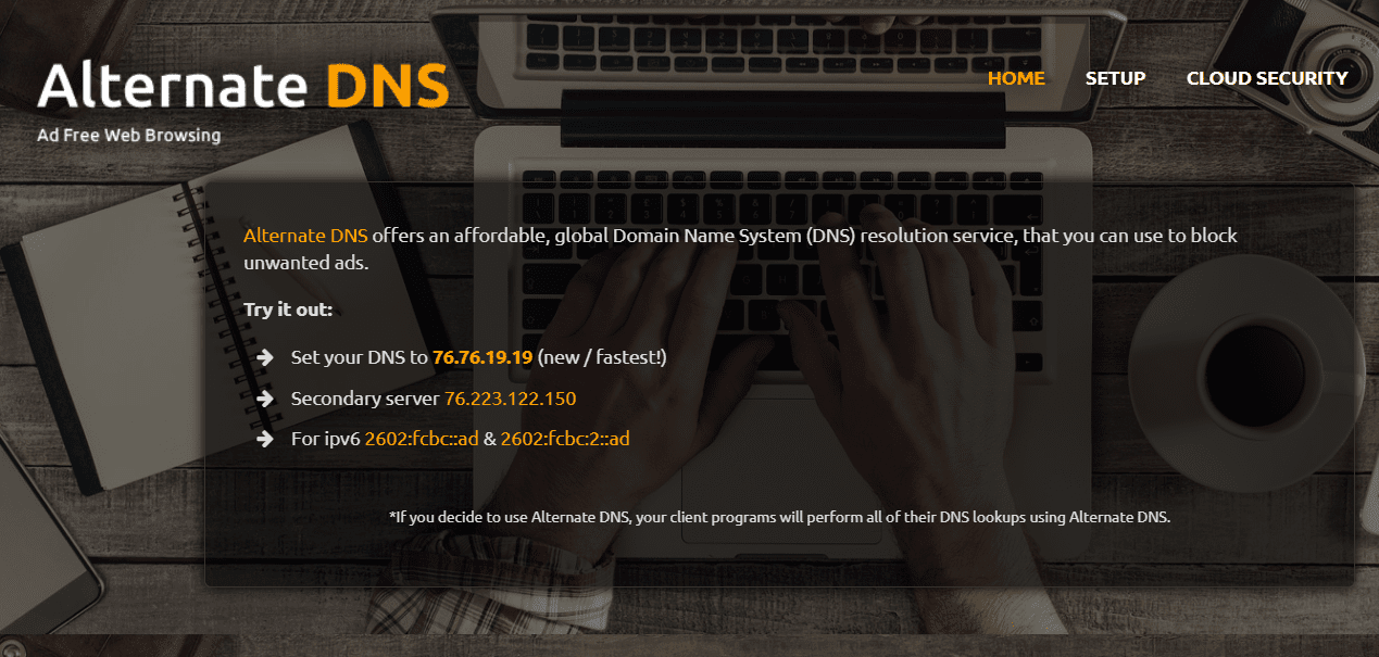 Alternate DNS is a free public DNS service that blocks ads before they reach your network. It works pretty well in my experience, but it's not 100 percent perfect.