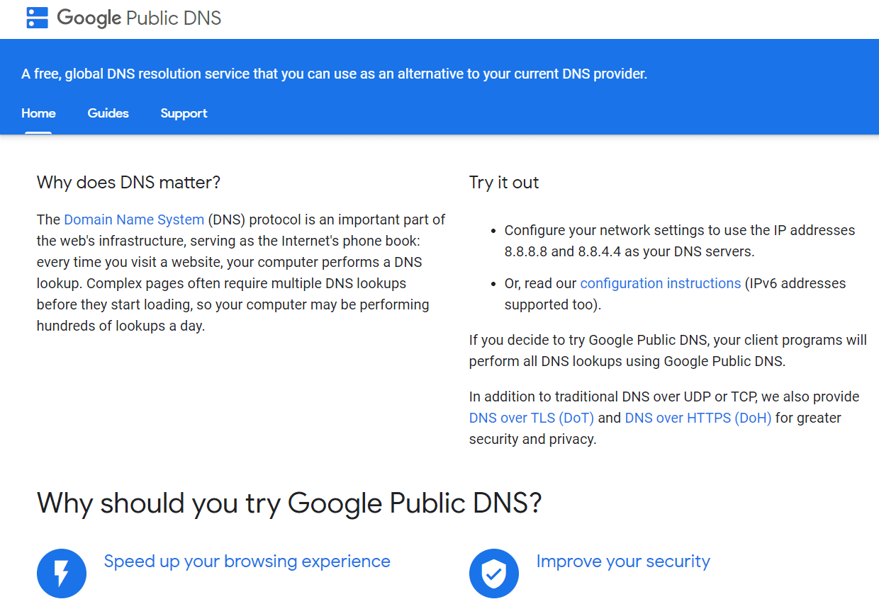 Google can achieve fast speeds with its public DNS servers because they're hosted in data centers all around the world, meaning that when you attempt to access a web page using the IP addresses above, you're directed to a server that's nearest to you. In addition to traditional DNS over UDP/TCP, Google provides DNS over HTTPS (DoH) and TLS (DoT).