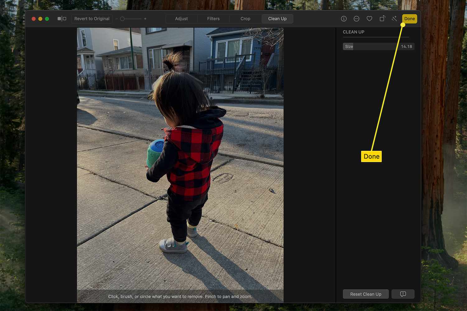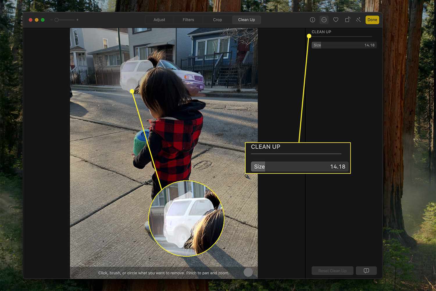 Adjust the Clean Up brush size using the slider and click, brush, tap, or circle the area to clean up or remove.