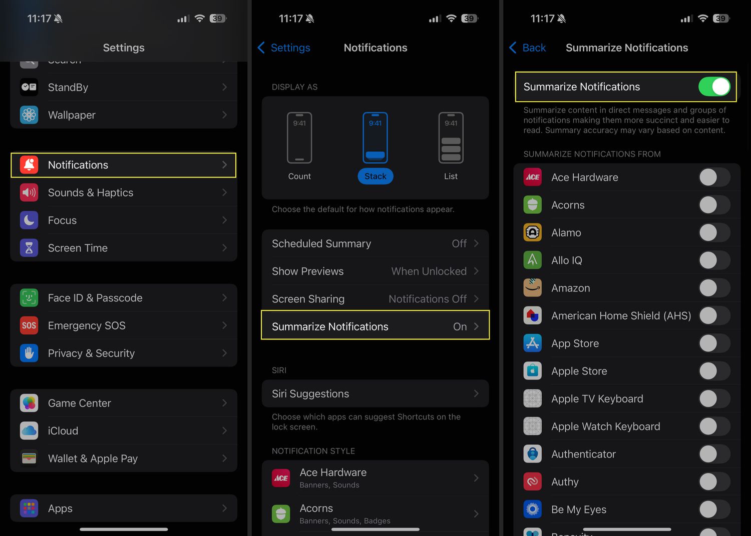 Apple Intelligence notification summaries provide key details about your app alerts so you can quickly decide whether to open them.