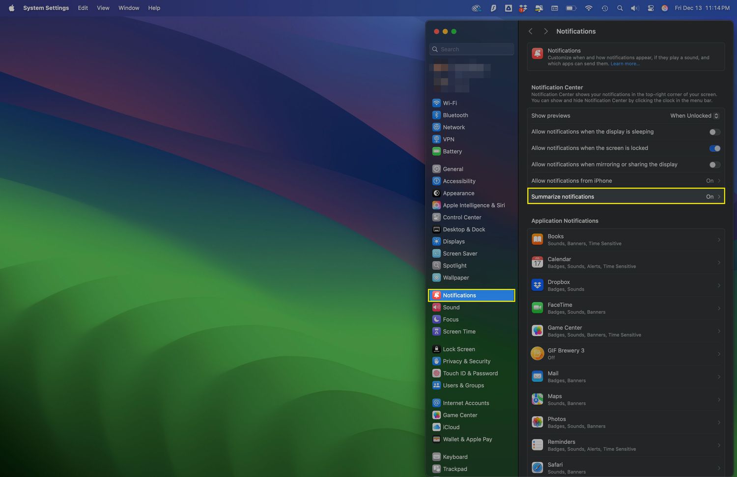 On a Mac, go to System Settings > Notifications > Summarize Notifications.