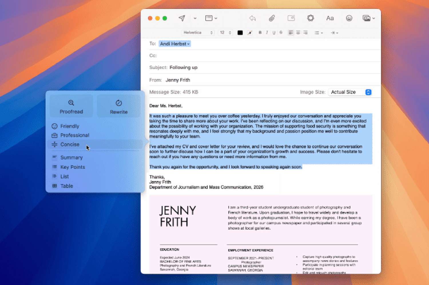 Use Writing Tools for a quick summary. You can highlight any text and pick a format that works for you, like a paragraph, bullet points, a table, or a list. This can make digesting the text quicker and easier.