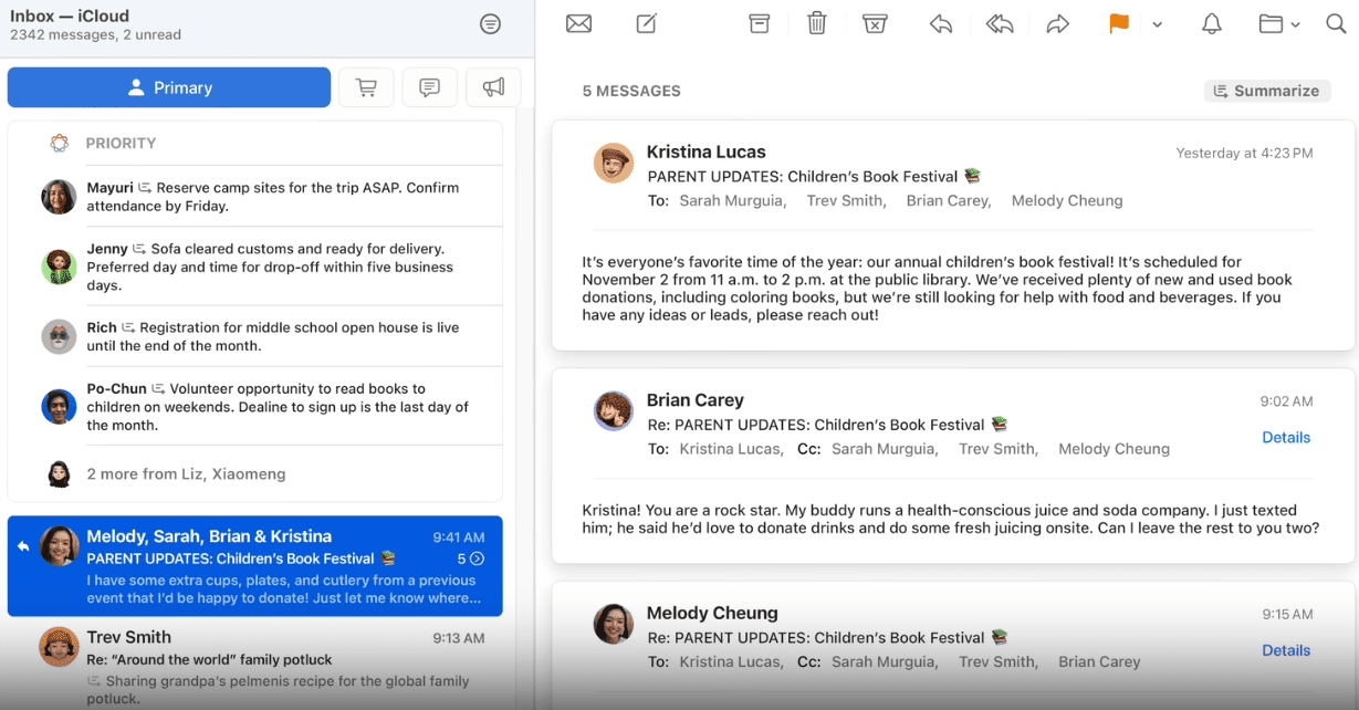 Priority Messages in the Mail app on a Mac. Apple Inc.