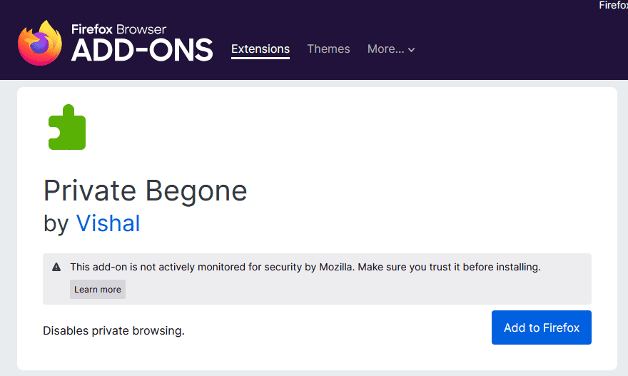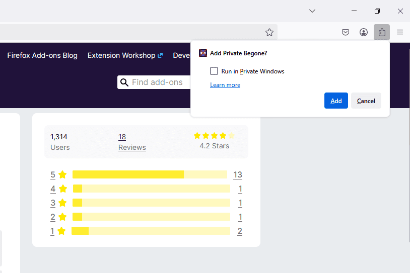 If a pop-up appears called Add Private Begone, select Add > OK.