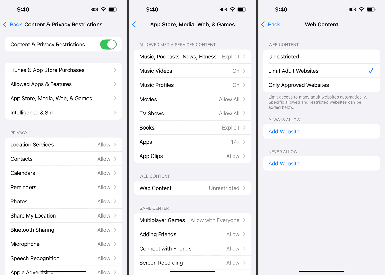 Go to Content & Privacy Restrictions > App Store, Media, Web, & Games.