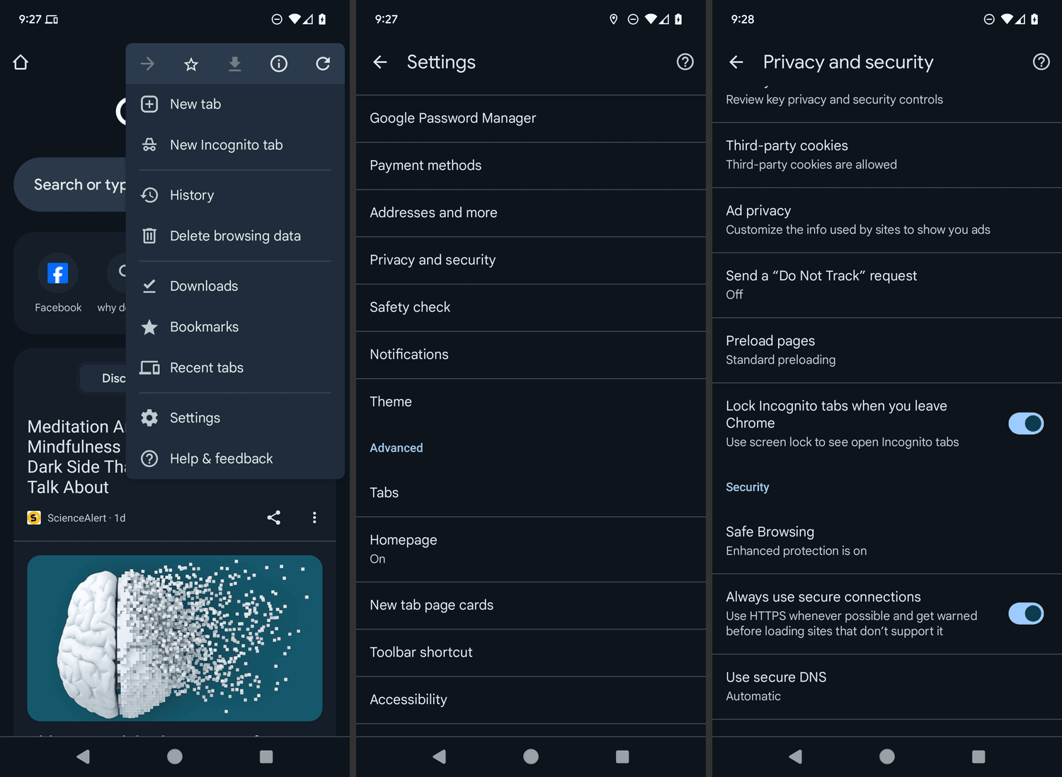 For these steps to go into effect, open a tab in Incognito Mode and then switch to a different app. When you reopen Chrome and try to view the Incognito tab, you'll need to press Unlock Incognito and then supply your fingerprint or PIN.