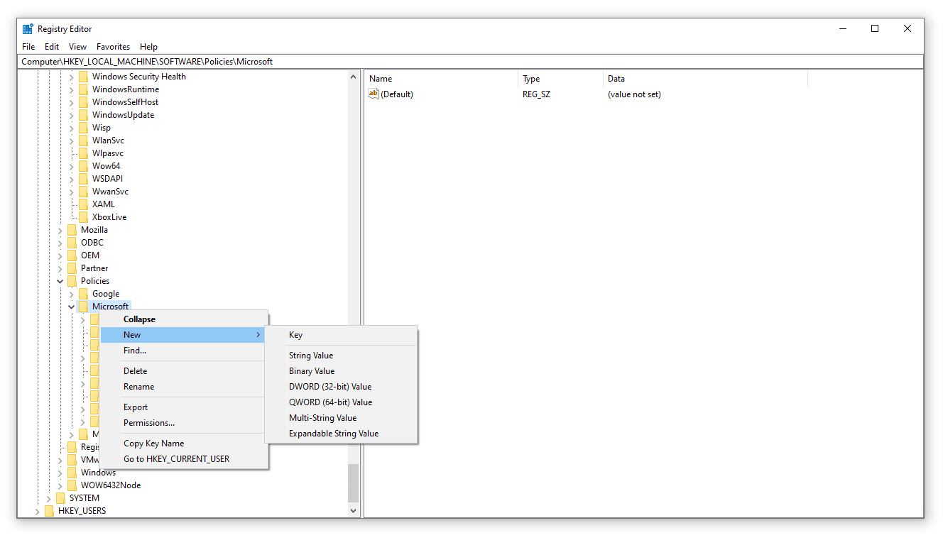 HKEY_LOCAL_MACHINE\SOFTWARE\Policies\Microsoft