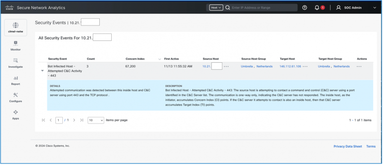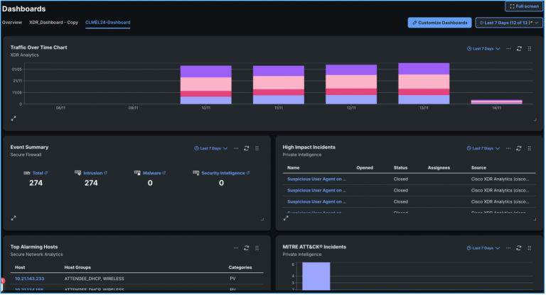 For the Cisco Live APJC 2024 SOC, a custom dashboard in the Control Center was built to highlight the findings from the various integrated solutions.