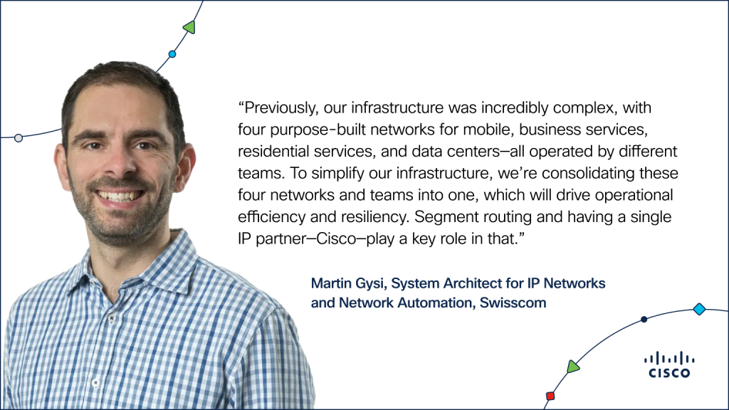 A: Martin Gysi, System Architect for IP Networks and Network Automation, Swisscom-We are critical infrastructure for Switzerland. Our network is the foundation for the country's emergency services. Tens of thousands of businesses depend on us to be able to operate effectively and serve their customers, and our mobile and residential customers expect flawless digital experiences.