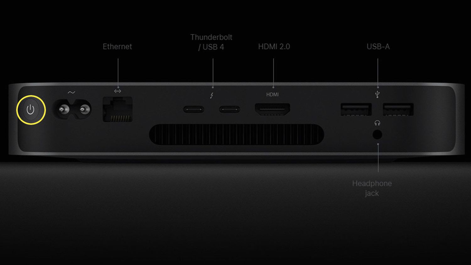 The most straightforward way to turn on your Mac mini is to locate and press the device's power button.