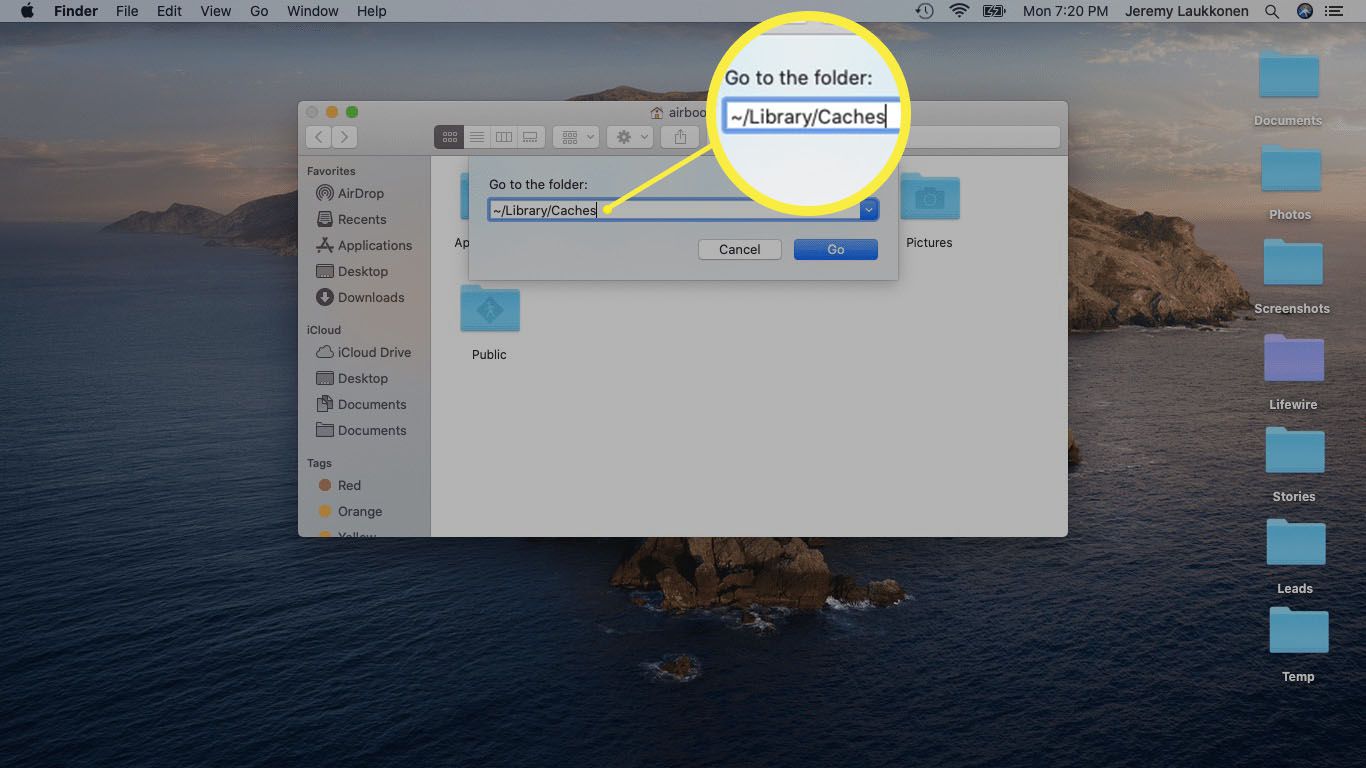 Cache files can take up a large chunk of your Other category, and they won't show up when you search for old and unwanted files, as you learned to do in the previous section. To clear out cache files, you need to navigate to the location where they are stored and delete them.