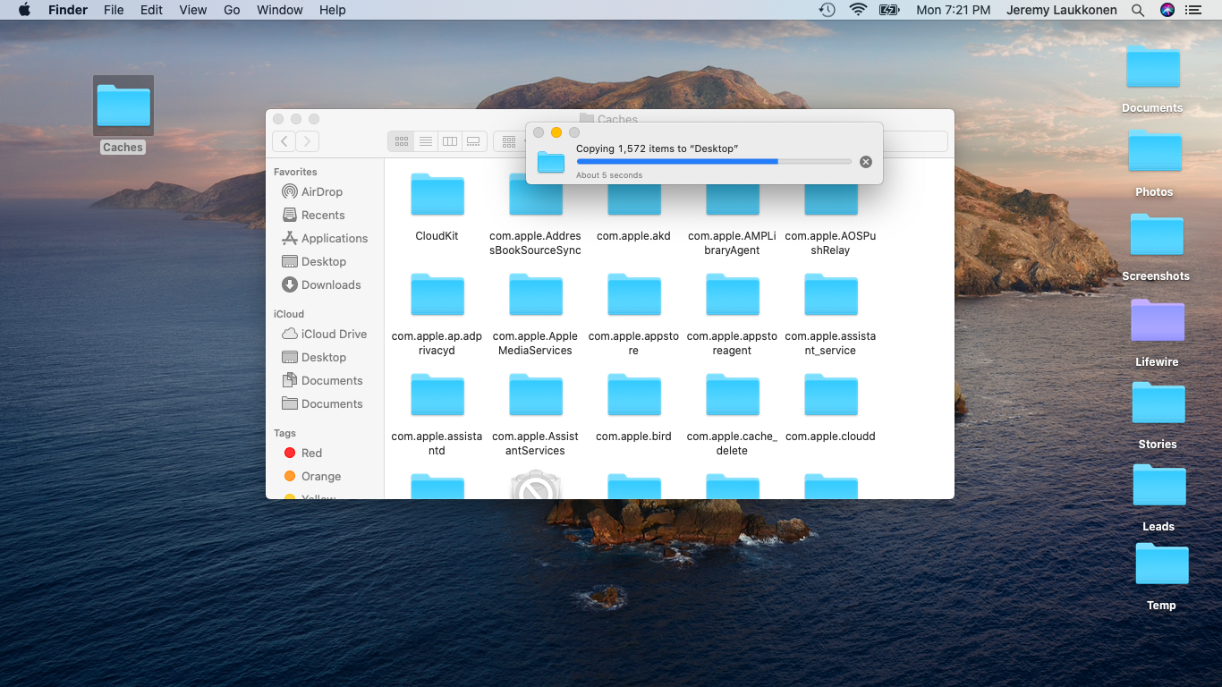 To prevent any possible issues, drag the Caches folder to your desktop temporarily before deleting anything. If you experience problems, you can simply drag it back and delete one thing at a time.