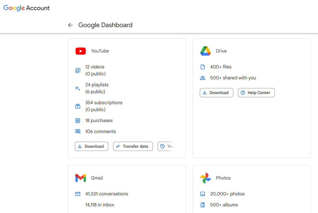 Everyone who has a Google account has access to what's called Google Dashboard. It's a way to see all your Google activity, settings, and profile information in one convenient place.